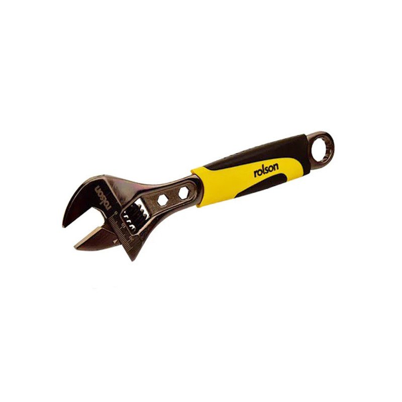 200mm Black Nickel Finish Adjustable Wrench - Heat treated carbon steel with metric scale on head and soft grip handle. Maximum jaw opening 30mm
