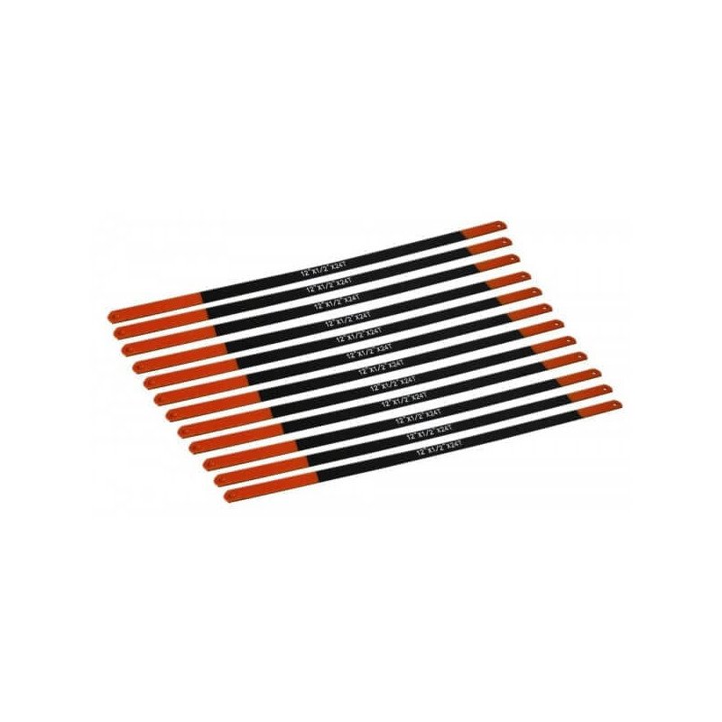 12 Piece 300mm Hacksaw Blades - A pack of twelve 24TPI carbon steel blades suitable for most hacksaw frames